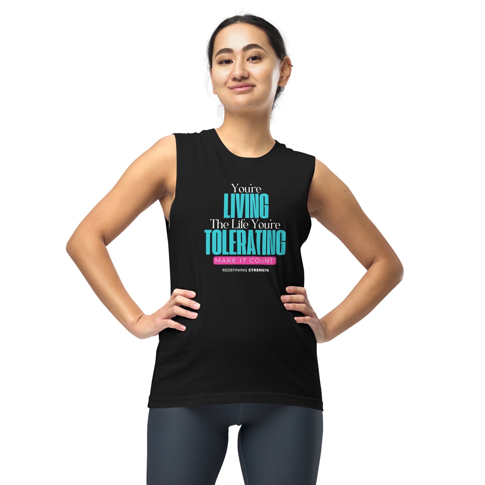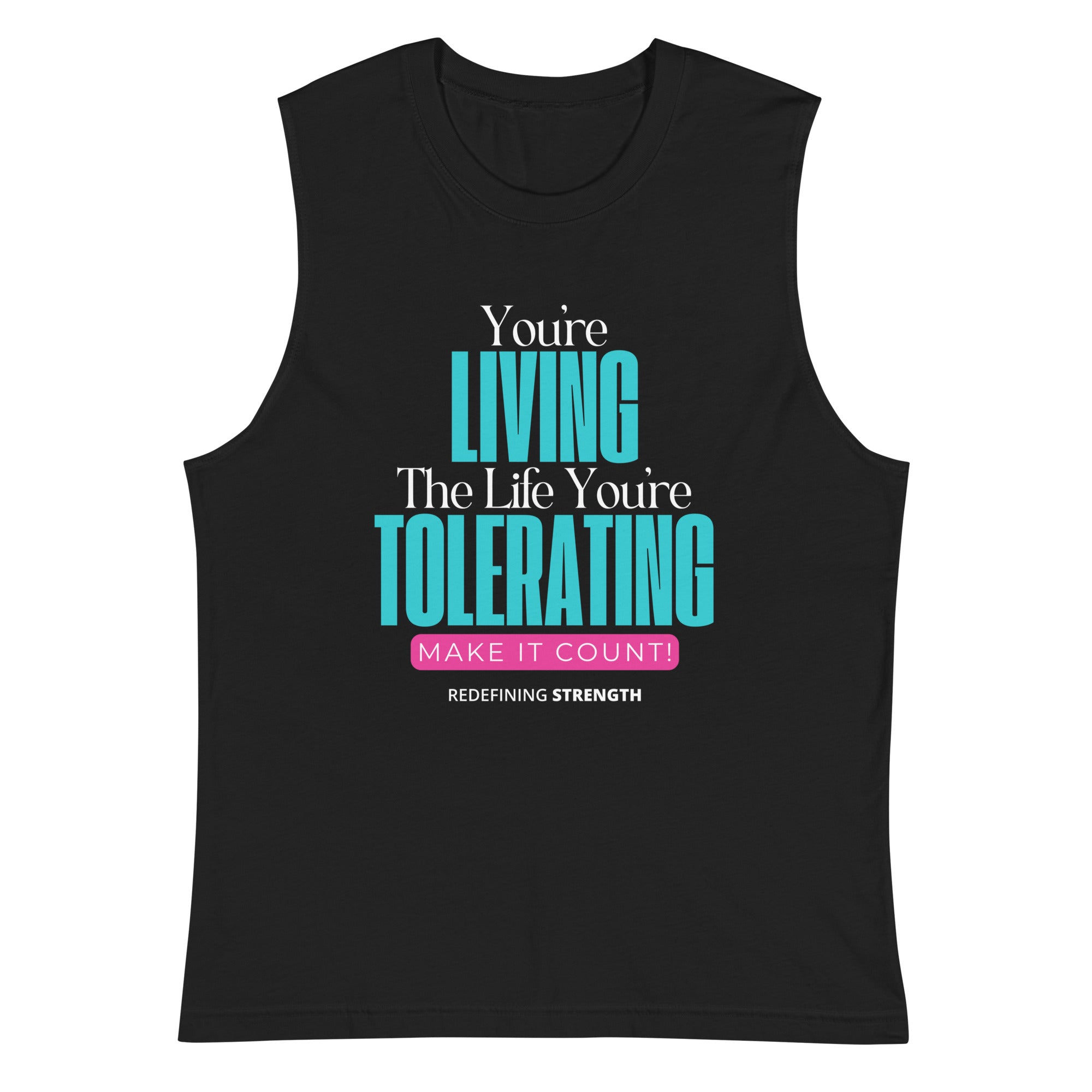 Make a bold statement with the "You're Living the Life You're Tolerating" muscle tank—a powerful reminder that you have the choice to shape your own destiny. Crafted for both style and impact, this jacket challenges you to break free from complacency and step into the life you deserve. With its sleek design and motivational message, it's perfect for those who aren't afraid to question the status quo. Wear it as a call to action: stop tolerating, start living!